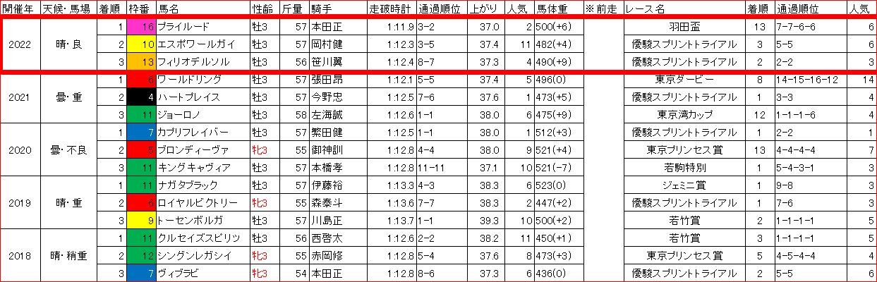 上がりも大きく落ち込むことがなかったため、中団より前の馬で決着し、2015年以来の1分11秒台の勝ち時計となった。