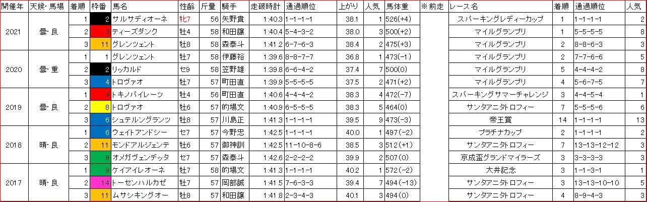 今年はマイルグランプリ組で掲示板に載ったのがスマイルウィのみなので、別路線から考えたい。