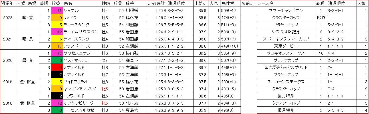 サマーチャンピオン・クラスターカップ等の交流重賞や、今回と同舞台のプラチナカップを経由した馬の活躍が目立つ。