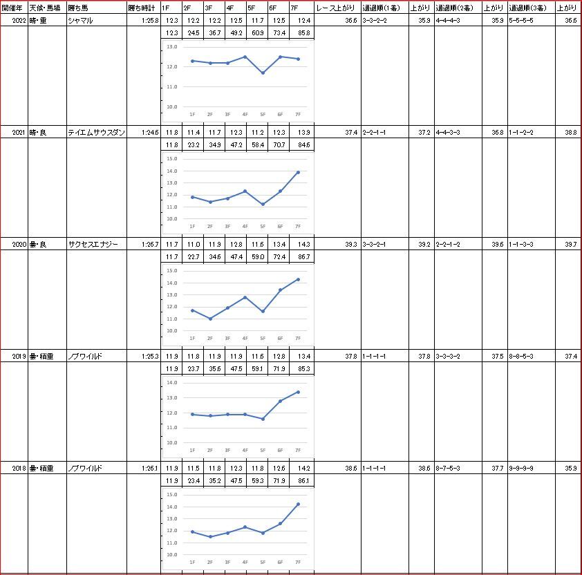過去5年で馬券内に来た15頭中、4コーナーで4番手以内だった馬が13頭。
