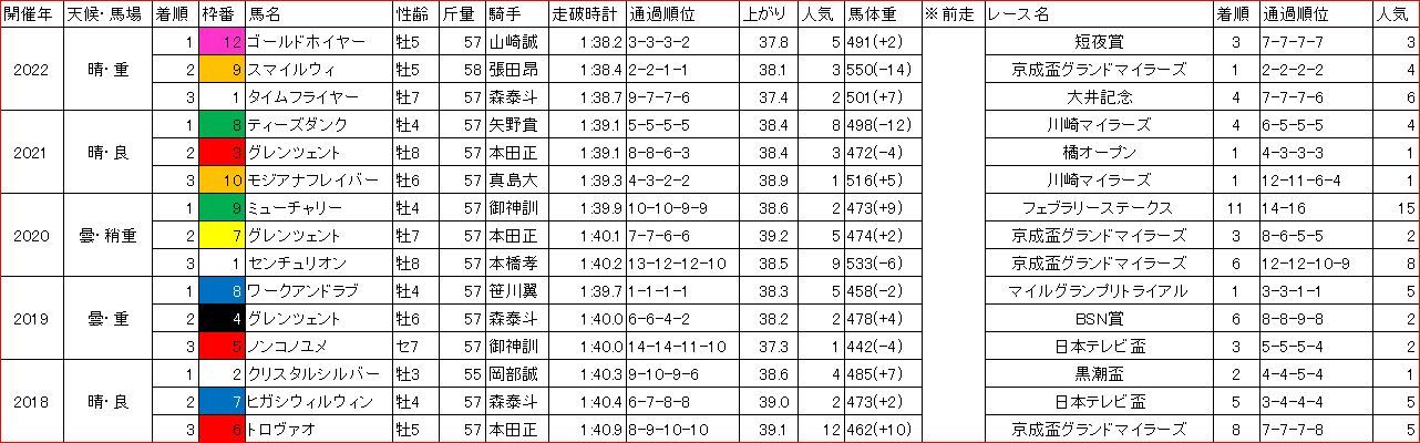 3走前に川崎マイラーズを勝利したが、その後はイマイチ。