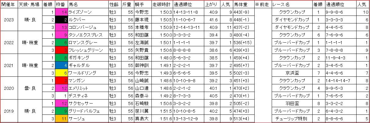 前走のクラウンカップは、4コーナーで1~5番手だった馬が上位を占めたレース。