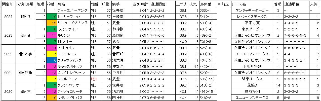 過去5年で馬券内に来た15頭中、4コーナーで4番手以内だった馬が12頭。