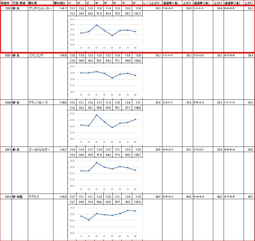 過去5年で馬券内に来た15頭中、4コーナーで4番手以内だった馬が12頭。