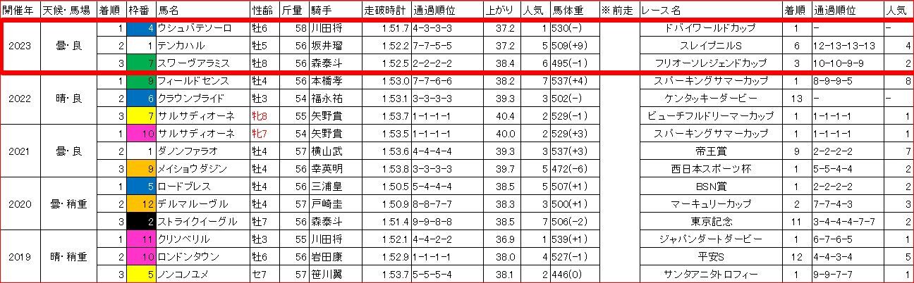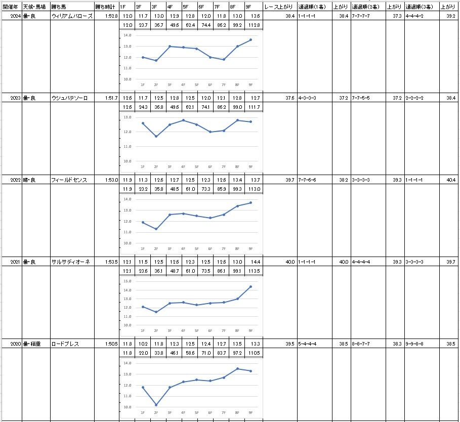 予想記事で書いた【過去5年のラップ】と比較すると、3ハロン・5ハロンの通過が過去最速。