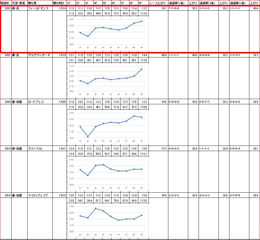 過去5年で馬券内に来た15頭中、4コーナーで4番手以内だった馬が11頭。