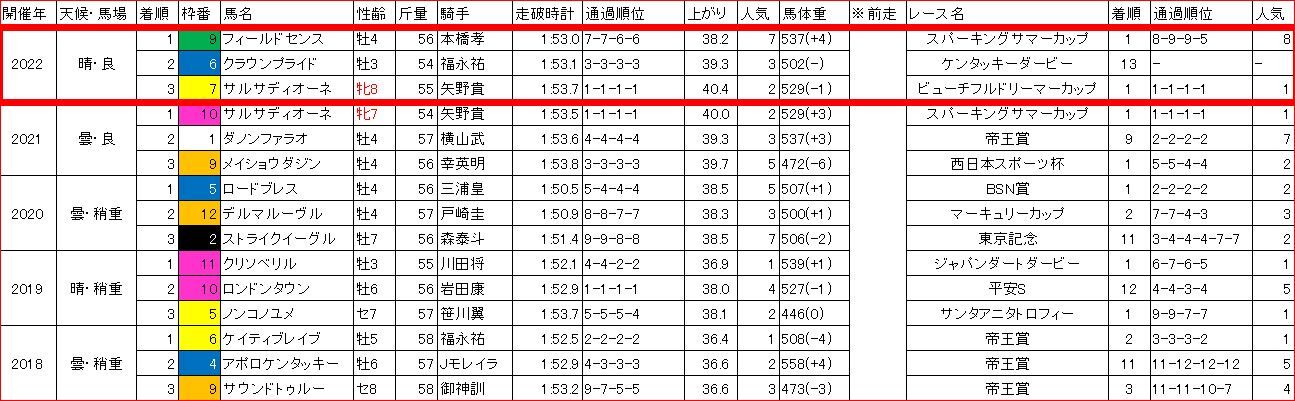 出走馬の前走がバラバラの為、省略