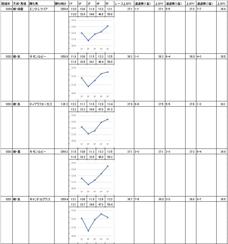 予想記事で書いた【昨年のラップ】と比較すると、3ハロンの通過が昨年より早くなった。
