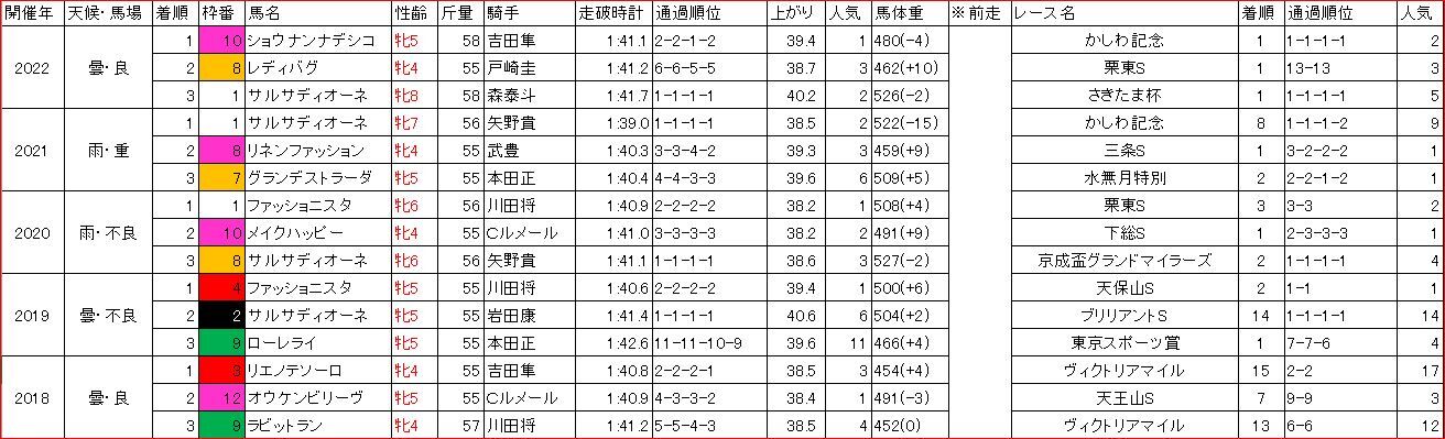 特にここ3年は、馬券内に来た9頭すべてが、4コーナーで5番手以内となっており、前にいないと勝負になっていない。