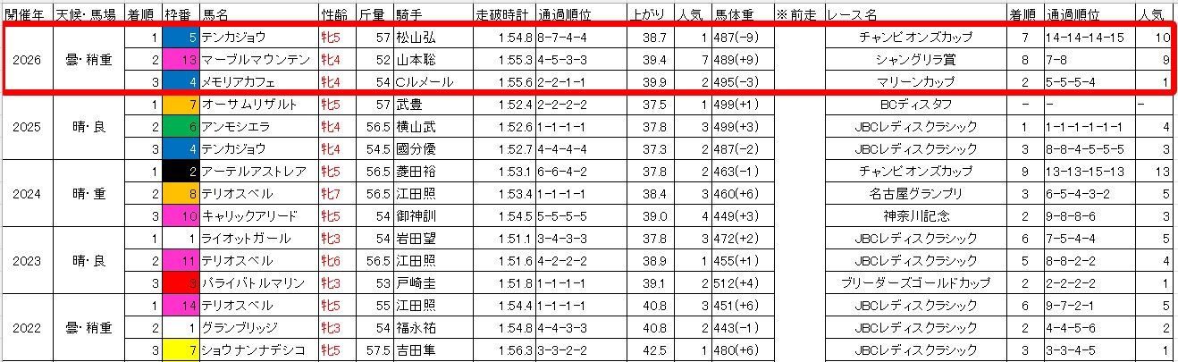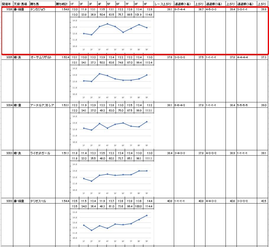 過去5年で馬券内に来た15頭のうち、4コーナーで4番手以内だった馬が11頭。